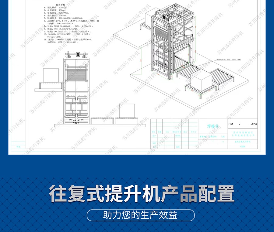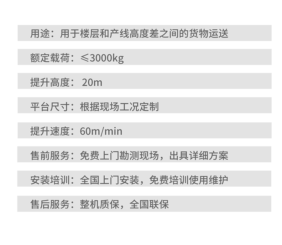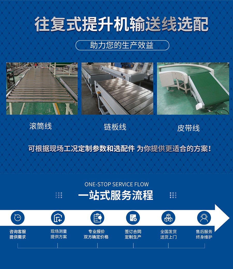 往復(fù)式提升機(jī)是由鏈條帶動(dòng),通過(guò)變頻調(diào)速控制電機(jī),便提升轎廂上下往復(fù)運(yùn)動(dòng).提升轎廂上配有傳動(dòng)機(jī)構(gòu),以便被輸送物自動(dòng)進(jìn)入升降機(jī)的提升轎廂上。該類提升機(jī)具有控制先進(jìn),性能可靠,提升轎廂定位精度高等特點(diǎn)。